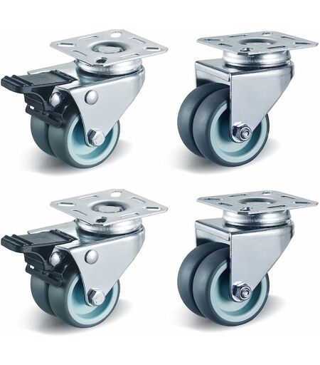 BAMNY Liferun 4 pcs Double Roulettes Pivotantes, Roulettes Transports 50 mm, Roulettes de Meuble avec Frein, sans Bruit, Capacité de Charge 400 kg, 2