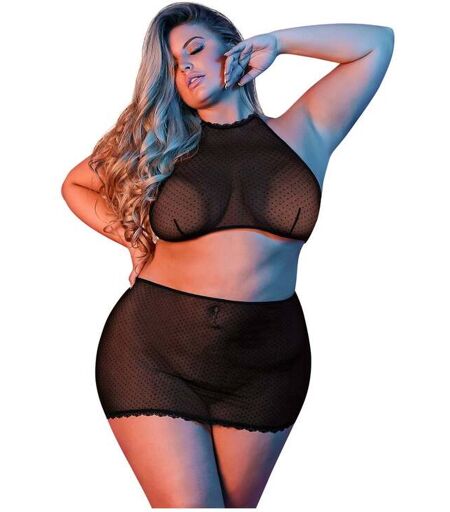 Faites une surprise à votre partenaire en l'attendant habillée seulement de cet Ensemble Polka 2 Pièces Transparent Noir GT de Magic Silk. Ce magnifique ensemble en maille fine à pois et entièrement transparent est composé d'une sublime brassière avec les liens qui s'attachent autour du cou pour encore plus d'audace et d'une jupette assortie qui soulingera vos formes féminines. Enfilez cet ensemble et transformez-vous en une véritable séductrice ! Composition : 95% Polyester, 5% Spandex Lavable à la main. Taille XXL. ...