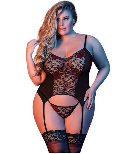 Magic Silk Guêpière Dentelle Fleurie Noire & Rouge GT