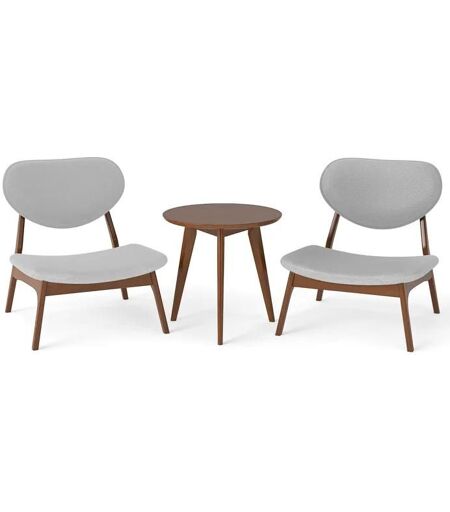 Costway Ensemble 3 Pièces De Salon-Table D'appoint Avec 2 Chaises Rembourrées En Tissu Velours D'agneau Cadre En Bois Moderne Gris