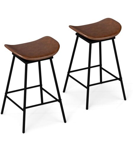 COSTWAY Lot de 2 Tabourets de Bar Pivotants Charge 150KG, Tabouret Haut Sans Dossier,Siège en Selle Rembourrés avec et Repose-pieds, 43 x 45 x 71,5 cm, Marron