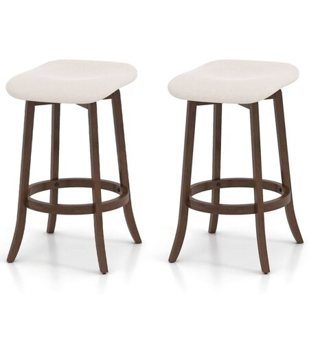COSTWAY Lot de 2 Tabourets de Bar Pivotants sans Dossier de 74 cm avec Siège Rembourrée, Pieds en Bois Massif et Repose-pieds pour Salle à Manger