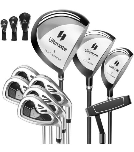 Costway Ensemble Clubs De Golf 9 Pcs Homme Droitier-Driver En Alliage D'aluminium-3 Couvre-Golfs-Fairway,Hybride,5 Fers,Putter Gris