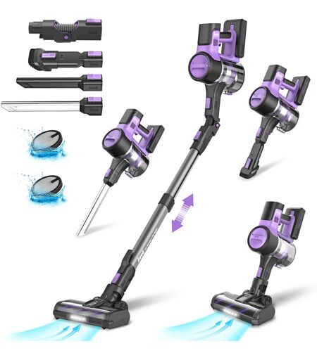 Aspirateur sans fil INSE S10, aspirateur balai 6 en 1 avec aspiration puissante de 45Kpa, batterie rechargeable d'autonomie maximale de 50 minutes