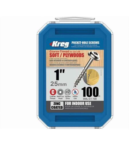 Kreg - Vis zinc 25 mm avec filetage grossier - Boite de 500 vis - SML-C1-500-INT