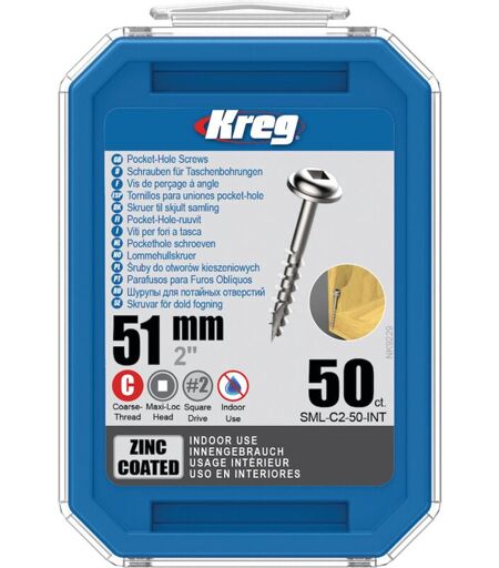 Kreg - 50 Vis à trous de poche 51 mm Revêtu de Zinc Maxi-Loc, Filetage épai SML-C2-50