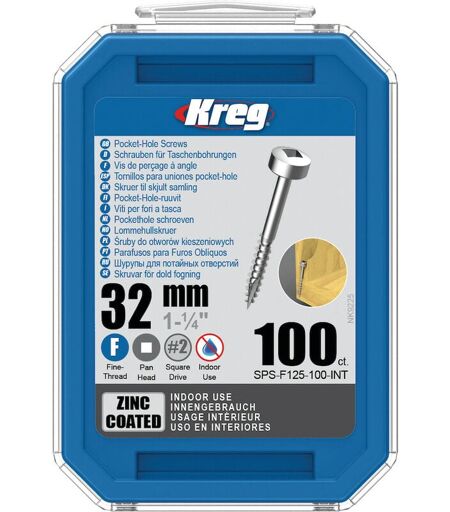 Kreg - Vis à trous de poche Revêtu de Zinc Pan-Head, Filetage fin - SPS-F125-100-INT
