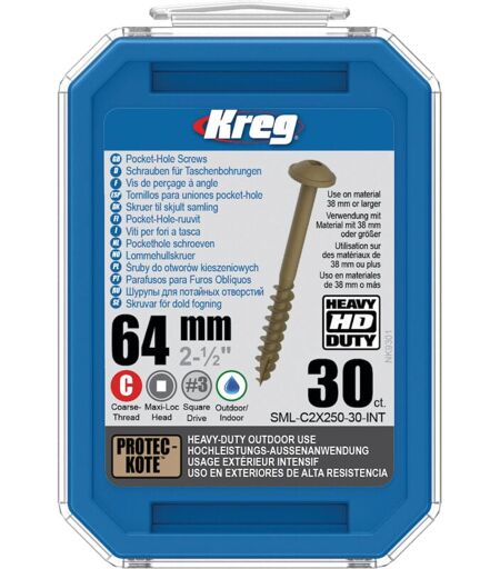 Kreg - Vis à bois SML-C2X250 Maxi-Loc 2 50'' 64 mm 30 unités