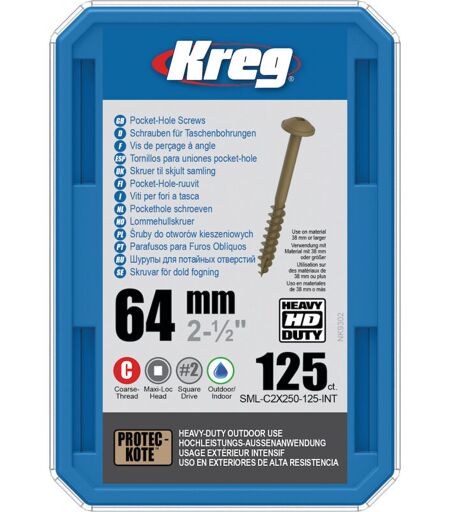 Kreg - Vis à trous de poche hd 64 mm Protec-Kote™ Maxi-Loc, Filetage épai, 125 SML-C2X250-125-INT
