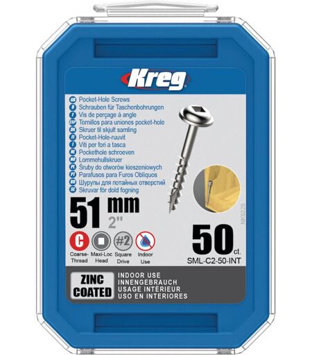 Vis à bois Kreg SML-C2; Maxi-Loc; 2 00''; 51 mm; 50 unités Code EAN : 647096807450 Marque : Kreg Poids du produit (kg) : 0.16 ...