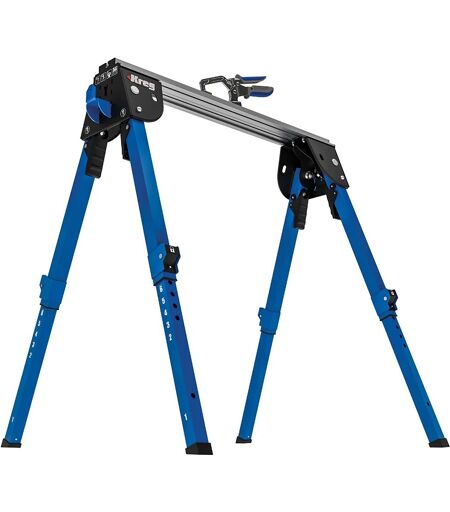Tréteau KWS500 - KREG Travaillez n'importe où grâce à un support de travail polyvalent, robuste et extensible. Avec le chevalet de travail Kreg®, vous pouvez créer un environnement de travail stable partout et transformer chaque espace en votre lieu de travail. Avec ses fonctions polyvalentes, le tréteau offre des capacités qui vont au-delà de celles d'un support de sciage ordinaire. La construction en acier et en aluminium rend le tréteau robuste et lui donne une capacité de 2200 lb. (997 kg) par paire, ce qui lui permet de gérer facilement des projets et des matériaux volumineux et lourds. La pince de table incluse facilite la fixation des pièces sur le tréteau en les fixant sur le long rail au-dessus ou à l'aide de trous de clé aux extrémités pour le serrage dans l'étau. Le rail accepte également le bois sacrificiel, ce qui permet de couper sans endommager le chevalet ou la scie. Si vous avez besoin de plus de surface de travail pour découper des matériaux de panneaux, vous pouvez également combiner l'établi avec notre établi mobile ou avec un autre établi. Grâce aux pieds réglables, vous pouvez régler le tréteau sur six hauteurs de travail différentes. Les pieds peuvent également être repliés sans outils afin que le chevalet puisse ensuite être utilisé au niveau du sol. À l'état plié, le chevalet peut également être transporté et rangé très confortablement. Spécifications techniques: Capacité de charge: 500 kg individuellement / 1000 kg par paire Matériel: aluminium et acier Hauteur réglable: 168 mm; 626 mm; 804 mm; 829 mm; 855 mm; 880 mm; 906 mm Livré avec : 1 Tréteau 1 Pince de table KBC3 2 porte-pièces pour extension de table 2 attaches pour bois sacrificiel mode d'emploi Vidéo : ...