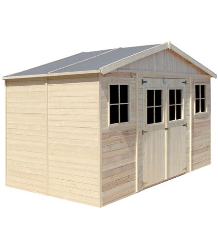 TIMBELA Abri de Jardin en Bois Naturel - Stockage extérieur avec fenêtres- H246x418x220 cm/8 m² hangar en bois naturel - Atelier rangement outils et vélos