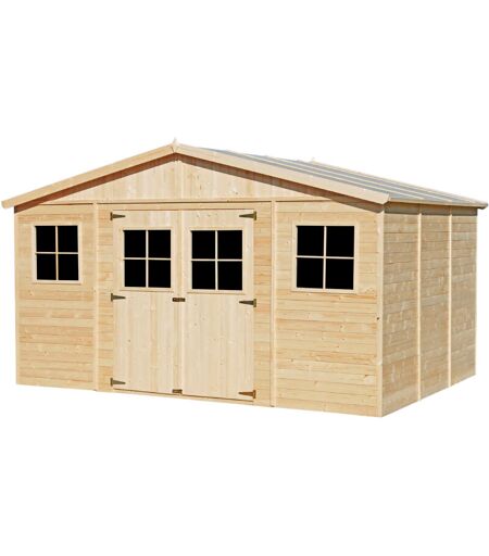 TIMBELA Abri de jardin en bois Exterieur avec plancher imprégné- Chalet en Pin / épicéa-H246x418x320 cm/12 m²- Construction de Panneaux - Rangement pour