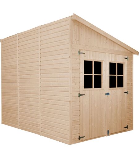 TIMBELA Abri de Jardin en Bois Naturel(avec paroi latérale) - Stockage extérieur avec fenêtres- H244x218x318 cm/6 m2, hangar en bois naturel - Atelier
