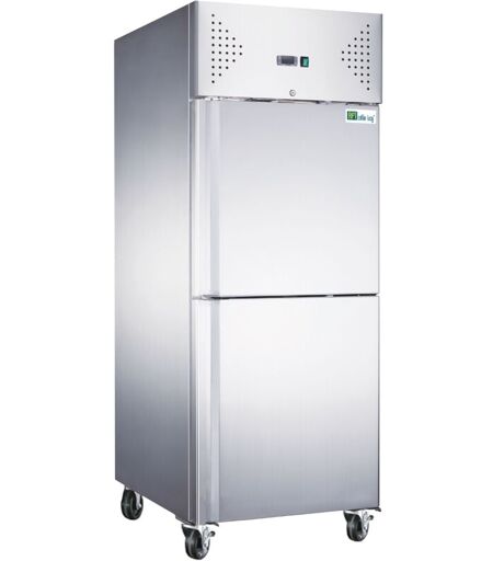 AFI Collin-Lucy armoire. Armoire réfrigérée négative série STAR en acier inoxydable (intérieur et extérieur), disponible avec 2 demi-portes. Elle est équipée d'un thermostat digital facilitant le réglage de la température, d'un compresseur de haute qualité et d'une lumière LED interne. Classe climatique 5 Portes réversibles Fermeture automatique à moins de 90° d'ouverture Dotations : 3 clayettes GN 2/1 Gaz réfrigérant : R290 Température : -18°C/-22°C Demi-portes : 2 Volume (litres) : 700 Puissance (W) : 495 Poids (kg) : 141 Largeur: 740 mm Profondeur: 830 mm Hauteur: 2010 mm. ...