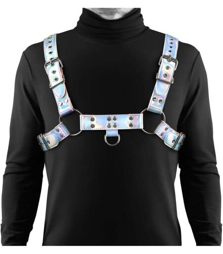 Je suis le harnais BDSM Dare Cosmo Harness de NSNovelties (https://www.espaceplaisir.fr/marques/221-nsnovelties). Je vous donne un look sexy et attrayant pour flamboyer lors de vos soirées osées ! Fruit de la rencontre entre un style BDSM audacieux et des reflets venus d'une autre galaxie, j'orne votre buste avec la sensualité et l'originalité que vous méritez. Essayez donc de me porter : vous verrez comme vous brillerez en soirée ! Mes lanières joliment placées souligneront votre poitrine et votre cou avec élégance. Une boucle centrale vient compléter le tout. Si vous détenez une laisse, il est tout à fait possible de l'attacher au niveau du buste ou du dos. Quant à mes détails et boucles en métal argenté, ils vous rendront encore plus glamour, tout en finesse. Réglable au niveau de votre taille et de votre buste, je suis agréable et confortable à porter. Et mes lanières en vinyle sont faciles à nettoyer ! ...