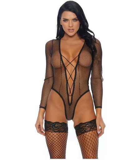 A la fois chic et sensuelle découvrez une collection sexy, branchée et de renommée mondiale pleine de style et d’attrait ! Découvrez l'irrésistible Body Caught Being Naughty Noir de la marque Forplay ! Un body entièrement en résille qui mettra outrageusement votre corps en valeur pour vous rendre aussi sexy que provocante. De longues manches, un large décolleté pour dévoiler votre poitrine jusqu'à votre nombril avec un laçage et à l'arrière une coupe échancrée pour devoiler vos fesses. Sa coupe incroyablement sexy mettra en valeur vos courbes Composition: 90% Nylon, 10% Spandex Tailles S, M, L, XL ...