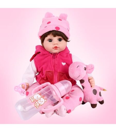 Cette poupée reborn fille de 45cm est réaliste et en silicone souple. Ses articulations permettent de la positionner facilement. Elle peut interagir avec vous grâce à sa fonction vocale. Ses yeux marrons avec des cils implantés lui donnent un aspect réaliste. Ses cheveux synthétiques peuvent être brossés, lavés et coiffés. ...