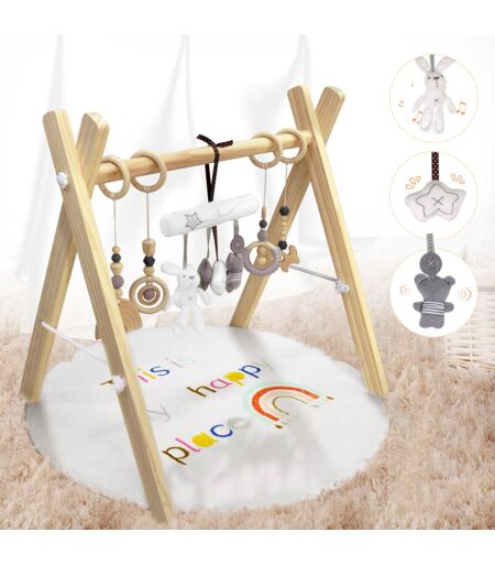 MAGICFOX Tapis d'Éveil et d'Activités Douceur Transportable pour bébé en Bois, Coussin et 8 Jouets Amovibles, Ultra-Doux