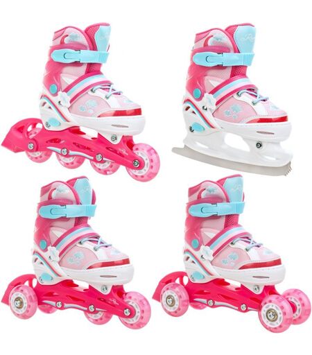 Roller En Ligne Zoya Roue Led Du 34 Au 37 + Patin A Roulette + Patin A Glace + Triskate Enfant Mixte Taille Ajustable Blanc/Rose Raven