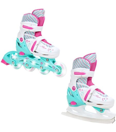 Roller En Ligne Loret Roues Led Du 27 Au 30 + Patin A Glace Enfant Mixte Taille Ajustable Blanc/Bleu/Rose Raven