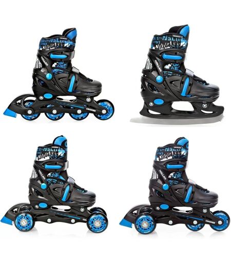 Roller En Ligne Nollan Du 30 Au 33 + Patin A Roulette + Patin A Glace + Triskate Enfant Mixte Taille Ajustable Noir/Bleu Croxer
