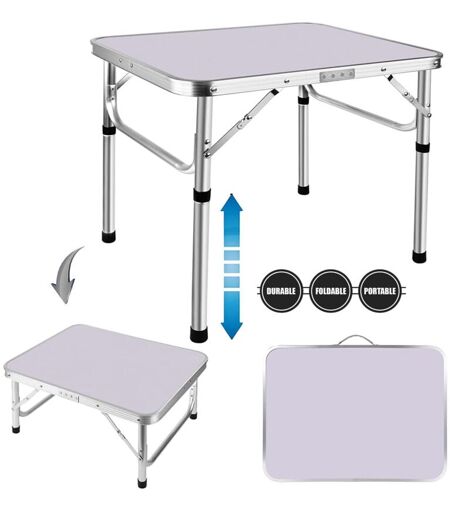 Table de camping pliante de 2 pieds avec hauteur réglable, table de camping pliante portable table de barbecue à main en aluminium cuisine pique - nique extérieur Dimensions: 60x45x26 / 56cm (déplié) 45x3.2x60cm (déplié) Couleur: blanc Matériel: alliage d'aluminium Description du produit: Polyvalent: table pliante blanche idéale pour les pique - niques, le camping, les événements extérieurs et intérieurs, les festivals et les fêtes. La table pliable peut également être utilisée comme Plateau de lit, table de service, table d'ordinateur portable, table de jeu, table à manger extérieure. 2 hauteur réglable: Haut: 22,05 "/ 56cm, bas: 10,2" / 26cm; Taille dépliée: 23.6 "x17.72" x10.2 "/ 22.05" (60x45x26 / 56cm); taille pliée: 23.6% "x17.72" x1.26 "/ 60x45x3.2cm. Poids: 5.03lbs / 2.3kg. Matériaux de haute qualité: notre plateau de table est en MDF, le cadre et les pieds sont en alliage d'aluminium amélioré. Cette table de camping de haute qualité est résistante à l'eau et aux taches, ...