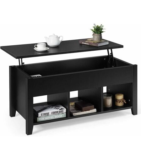 Costway - Table Basse avec Plateau Relevable Noir 104,5 x 49,5 x 48,5 cm avec Trois Compartiments Naturel Noir