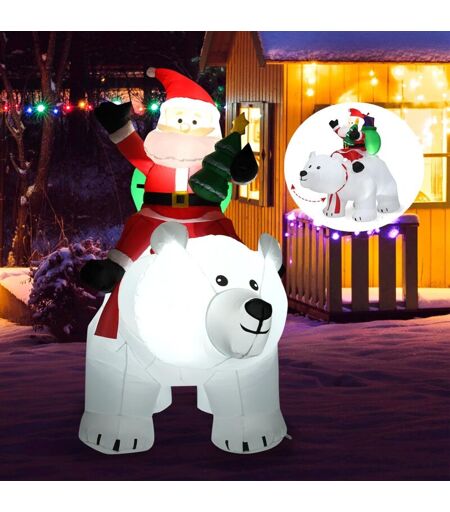 GOPLUS 175CM Père de Noël Ours Gonflables avec Lumières, Père Noël de Chevauchant l'ours,Décoration Noel Intérieur Extérieur(Père de Noël avec Ours)