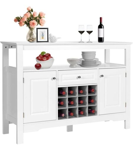 GOPLUS Buffet de Cuisine avec Support Amovible de Rangement pour 12 Bouteilles, Etagere, Tiroir, Portes de Rangement, Meuble de Bar pour Cuisine et Salon,