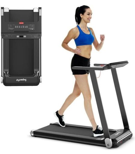 Connexion APP pour contrôler le tapis de course, enregistrer les données d'entraînement ?12 programmes prédéfinis et 3 modes au choix ?Haut-parleur Bluetooth et support d'appareil ?Affichage LED pour le suivi direct des données ?Moteur puissant et silencieux 0,75HZ ?Design pliable et 2 roues intégrées facilite le rangement et le déplacement ?Dimensions de la courroie: 95 x 39 cm ?Plage de vitesse : 0,96-12 km ...
