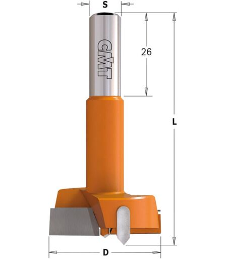 369.350.61 FORET POUR CHARNIÈRE DP Z2+2 S=10x25 D=35x70 DX CARACTÉRISTIQUES TECHNIQUES : • Fabriqué en acier spécial à haute résistance. • Revêtement en résine fluorocarbonée PTFE noire et orange. • Pointe de centrage HW. • 2 tranchants (Z2). • 2 graveurs affûtés négativement (V2). • Fixation avec plan de fixation et vis pour le réglage axial. ...