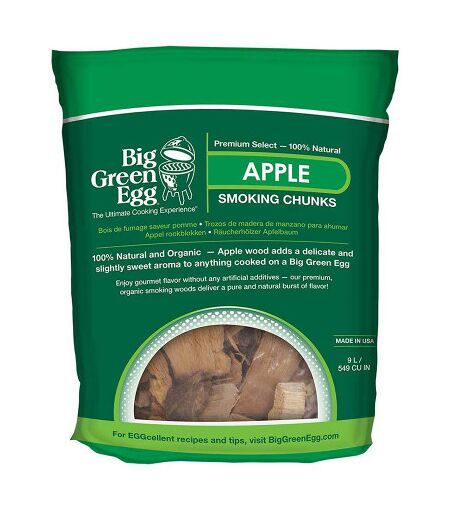 Pour cuire et fumer vos préparations ! Morceaux de bois 100% naturel et organique Ajoute un arôme délicat et légèrement sucré Bois de pommier - Contenance : 9 litres Convient à tous les modèles de Big Green Egg ...