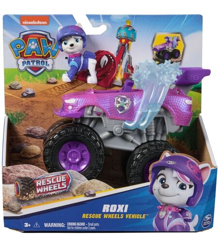 PAW 6070222 Figurine Patrol Rescue Wheels Roxi - - Vis des missions de sauvetage pleines d'action avec Roxi : Le monster truck de Roxi est doté d'énormes roues au design et au style PAW Patrol authentiques, qui ressemblent exactement au véhicule de la série. Appuie sur l'aile de son camion-jouet pour déployer le bélier à ressort afin de franchir les obstacles et devenir le héros du jour. - - Roxi est équipée du tout nouvel uniforme Rescue Wheels, qui comprend un casque et un sac à dos. Installez Roxi sur le siège du conducteur avant de vous lancer dans une mission de sauvetage pleine d'action. - - Détails : - - À partir de : 3 ans ...