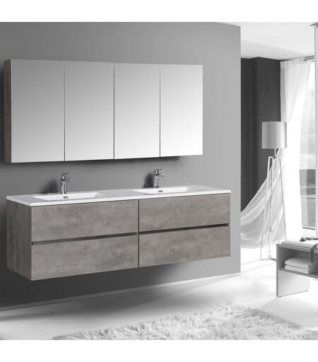Ensemble de salle de bain EDGE 1700 - Colonne de rangement et armoire de toilette en option La base du meuble EDGE 1700 comprend une double vasquemarbre artificiel avec revêtement gelcoat blanc ou en pierre de synthèse avec un revêtement sable de quartz noir et un sous vasque d'une largeur de 170cm disponible en gris effet béton, blanc brillant,noir mat ou effet chêne naturel. Pour optimiser votre espace de rangement, nous vous proposons en option une colonne de rangement et une armoire de toilette de couleur assortie que vous pouvez facilement ajouter à votre commande en sélectionnant ce que vous désirez en haut de la page au début de l'offre. La porte du meuble de rangement est réversible, avec ouverture à droite ou à gauche. Tous les meubles sont équipés de charnières en métal de haute qualité et d'une fonction de fermeture en douceur Soft-Close. Les tiroirs sont à l'intérieur dans un ton gris morderne avec éléments latéraux en métal haute résistance. L'ensemble est déja prémonté ...