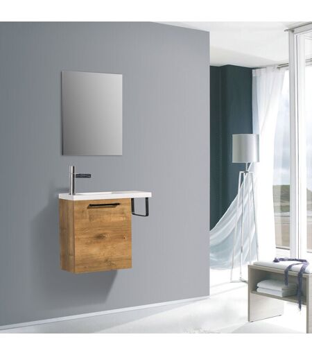 Petit ensemble pour la salle de bain ou WC invités TABLO 400 - avec porte-serviettes intégré Le meuble lave-mains TALBO 400 est la solution idéale pour les petits espaces. Avec une largeur totale de seulement 55cm, il met une touche moderne aussi bien dans les petites salles de bains que dans les toilettes pour invités. La porte avec montage à doite ou à gauche a un système d'ouverture et fermeture soft-close et des charnières en métal. La vasque avec porte-serviettes noir intégré sur le côté est également réversible. TABLO 400 est disponible dans de nombreuses couleurs et peut-être acheté seul ou en combinaison avec une armoire de toilette. Veuillez sélectionner en option ce que vous désirez en haut de la page au début de l'offre. Découvrez sur notre site un large choix de robinets et siphons pour vasques sans trop plein assortis au meuble. Comme d´habitude, le nom BERNSTEIN est un garant de qualité. Détails du produit Vasque Dimensions ca. 55 x 11 x 20 cm (L x H x P) Matière marbre ...