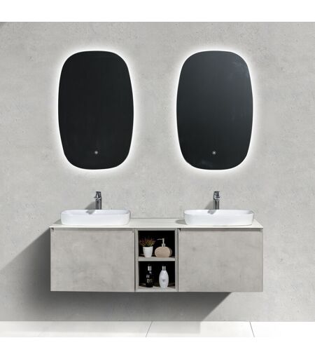 Bernstein - Ensemble de meubles de salle de bain inalco 1500 gris effet béton - Miroir en option Sans miroir, Sans trous de montage