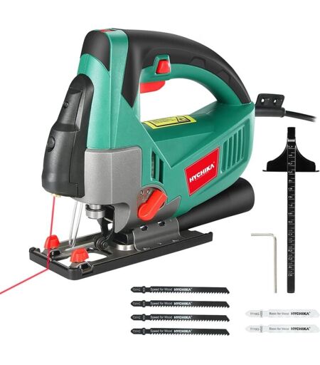 Scie Sauteuse Hychika 750W, Avec Moteur en Cuivre Puissant, 800-3000SPM Tours par Minute Avec 6 Vitesses Variables, Angle d'inclinaison ¡À45 ¡ã