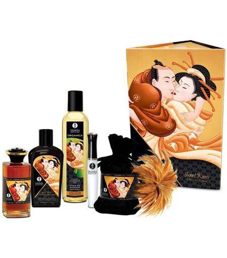 Vivez des préliminaires gourmands et sensuels avec le Coffret Sweet Kisses de Shunga ! Cet ensemble de 5 produits érotiques exquis vous mènera vers une aventure au goût sucré qui ravivera la passion et vous aidera à repousser les limites de vos plaisirs ! Avec la complicité de votre partenaire, explorez de nouvelles saveurs et des sensations extraordinaires grâce aux produits de haute qualité de Shunga. Le coffret contient : * Huile de Massage Érotique Organica (https://www.espaceplaisir.fr/shunga-huile-de-massage-delectable-organica-bio-240-ml.html) - Douceur d’Amande Cette huile 100% naturelle aux fragrances enivrantes glisse aisément sur la peau sans laisser de sensation grasse. * Huile Chauffante Aphrodisiaque (https://www.espaceplaisir.fr/shunga-huile-chauffante-aphrodisiaque.html) - Baisers au Caramel Une délicieuse huile chauffante comestible conçue spécialement pour les zones érogènes. Elle s’active par le souffle chaud de doux baisers intimes. * Poudre de Corps Comestible (https://www.espaceplaisir.fr/shunga-poudre-de-corps-comestible-douceur-de-neige.html) - Miel de Nymphes Transformez votre partenaire en un délicieux dessert ! Saupoudrez la poudre sur les zones érogènes, et régalez-vous avec cette saveur excitante. Plumeau en duvet naturel inclus. * Peinture de Corps Comestible (https://www.espaceplaisir.fr/shunga-peinture-de-corps-comestible-chocolat-aphrodisiaque.html) - Chocolat Aphrodisiaque Pour le plaisir du jeu, les amoureux peuvent laisser libre cours à leur créativité et ensuite se régaler avec cette peinture comestible au goût délicieux, sans colorant et qui ne tâchera pas vos draps ! * Gloss Plaisir Oral Divin (https://www.espaceplaisir.fr/shunga-gloss-plaisir-oral-divin-eau-de-coco.html) - Eau de Coco Formulé pour exciter et sensibiliser les parties intimes, ses effets de chaleur, de froid et de chatouillement intensifient le plaisir oral. ...