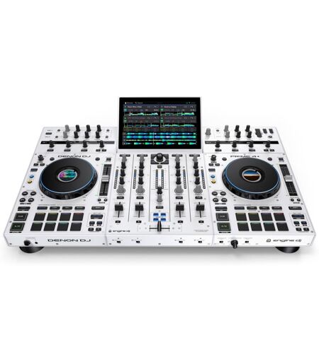 Denon DJ Prime 4+ White Special Edition: PERFORMANCE PROUVÉE, ÉLEVÉE: La PRIME 4+ WHITE Special Edition apporte un nouveau look et de nouvelles fonctionnalités à la puissance légendaire de la PRIME 4+. Avec une accessibilité musicale inégalée, de nouvelles options d'effets dynamiques, une surface de roue jog plus grande de 10 % et les fonctions de performance toujours plus étendues d'Engine DJ, la PRIME 4+ est parfaitement équipée pour tous les styles de DJ. Désormais dotée d'une nouvelle finition blanche, la PRIME 4+ WHITE est parfaitement adaptée aux mariages et aux événements mobiles pour lesquels une esthétique ultra-propre est appréciée. CRÉÉ POUR LES DJS, PAR LES DJS: Conçue pour les DJ en activité, la PRIME 4 + WHITE associe le potentiel créatif de quatre platines autonomes à des fonctions professionnelles inégalées et à une construction robuste, garantissant des performances DJ cohérentes et fiables, soir après soir et concert après concert. Avec deux sections distinctes de mixage de microphones, vous, votre MC ou vos invités sonnent toujours au mieux, grâce à des commandes d'égalisation, de volume et d'effets dédiées, ainsi qu'à des options de commutation automatique. Tout en prenant le contrôle de la piste de danse principale, vous pouvez acheminer sans effort un mixage secondaire ou une liste de lecture vers un salon séparé ou un espace cocktail à l'aide de la sortie de zone indépendante, ce qui augmente votre adaptabilité et votre valeur en tant que DJ professionnel. TRAITER SANS EFFORT N'IMPORTE QUELLE DEMANDE: Le PRIME 4+ WHITE est à la pointe de l'industrie DJ en termes de prise en charge de la musique en streaming, offrant un accès instantané à plus de 100 millions de pistes couvrant tous les genres. Son analyse embarquée rapide comme l'éclair met efficacement en mémoire tampon les pistes en streaming dans la mémoire interne, garantissant une lecture ininterrompue à partir de n'importe quelle source Wi-Fi ou hotspot de téléphone portable. Grâce à sa capacité d'entrée audio Bluetooth entièrement routable, le PRIME 4+ WHITE peut facilement lire des morceaux à partir de smartphones et d'autres appareils Bluetooth compatibles. ADVANCED DYNAMIC FX SUITE: La PRIME 4+ WHITE dispose de 29 effets principaux entièrement personnalisables et de 4 effets de balayage dynamiques contrôlés par des boutons, afin que vous puissiez libérer tout votre potentiel créatif en matière de mixage. Les deux sections Main FX sont dotées d'écrans OLED dédiés, de boutons et de molettes permettant de sélectionner et de manipuler la fréquence, les paramètres, les divisions de temps et le mixage humide/sec des FX sélectionnés. Pour des montées en puissance et des transitions créatives, les 4 Sweep FX sont automatiquement activés en tournant le bouton Sweep FX sur chaque canal et peuvent être superposés aux Main FX pour une infinité de combinaisons d'effets immersifs. Le Touch FX expressif transforme l'écran tactile de 10,1 pouces en contrôleur XY, et le Fader Echo... ...