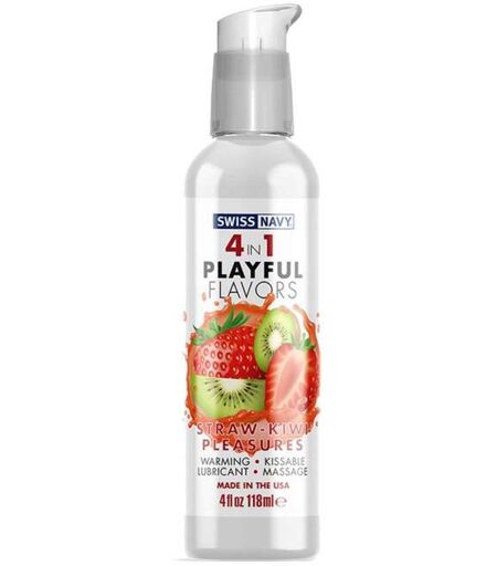Swiss Navy Gel massage et lubrifiant chauffant 4 en 1 Straw-Kiwi Pleasures 118 ml