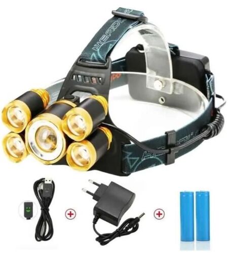 Lampe Frontale Puissante Avec 5 Led De 8000 Lumens, Sgodde Lampe Torche Led Zoomable Et Étanche Avec 2 X 18650mah Batterie