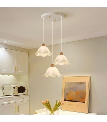 GOECO Lampe suspendue à 3 lumières de style nordique moderne japonais Wabi-sabi lampe suspendue table à manger lustre abat-jour en fleur acrylique