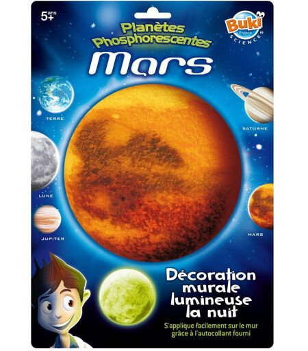 Mars, la planète rouge et prochaine étape de la conquête spatiale. Détacher les autocollants et coller les planètes sur une surface lisse et propre. Diamètre de la planète : 15 cm. NB : ne pas utiliser sur le papier peint et/ou sur de la peinture fraîche. ...