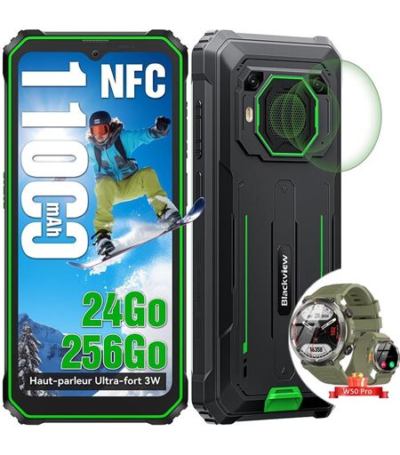 Blackview BV6200 Plus Téléphone portable Incassable 6.56" 256Go Android 14 11000mAh Vert avec Blackview W50 Pro