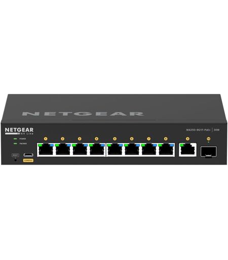 NETGEAR M4250-9G1F-PoE+ - Commutateur - C3 - Géré - 8 x 10/100/1000 (8 PoE+) + 1 x 10/100/1000 + 1 x Gigabit SFP - flux d'air côte à côte - de bureau - PoE+ (110 W)