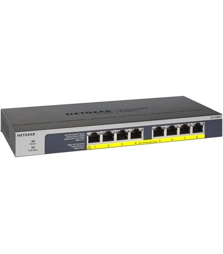 NETGEAR GS108LP - Commutateur - 8 x 10/100/1000 (PoE+) - de bureau, Montable sur rack, fixation murale - PoE+ (60 W) - Tension CC