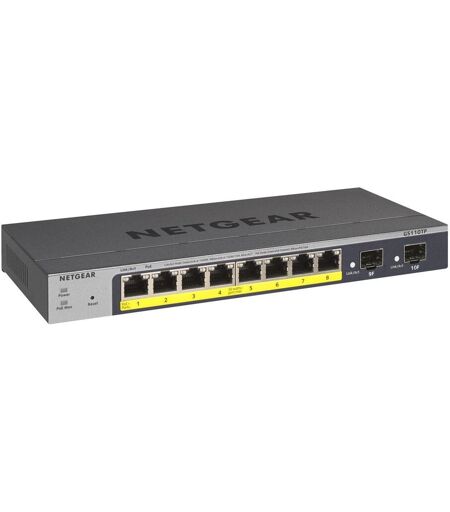 NETGEAR Smart GS110TPv3 - Commutateur - intelligent - 8 x 10/100/1000 (PoE) + 2 x SFP - de bureau, fixation murale - PoE+ (55 W) - Tension CC