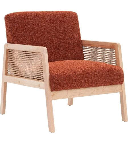 Homifab - Fauteuil en cannage et tissu bouclé rouille - Mani