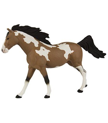 pAlso known as painted horses, pintos are characterized by large patches of color. Many horse breeds carry pinto patterns. This pinto stallion is a mustang, or wild horse. Originally brought to the new world by Spanish conquistadors, mustangs were adopted by the native Apache and allowed to roam free, ensuring their place in the history of the American West. The Safari Ltd Winners Circle Pinto Mustang Stallion is part of the Winners Circle Horse collection, which was created with collectors and horse lovers in mind. Each replica has been sculpted by leading horse experts, is individually hand painted, and features solid construction from safe, phthalate and lead-free materials. Also included is an educational hangtag. Lifelike and realistic from hoof to tail, this emblem of the American West measures 7.25L x 4.25H. Recommended for ages 3 and up.p ...